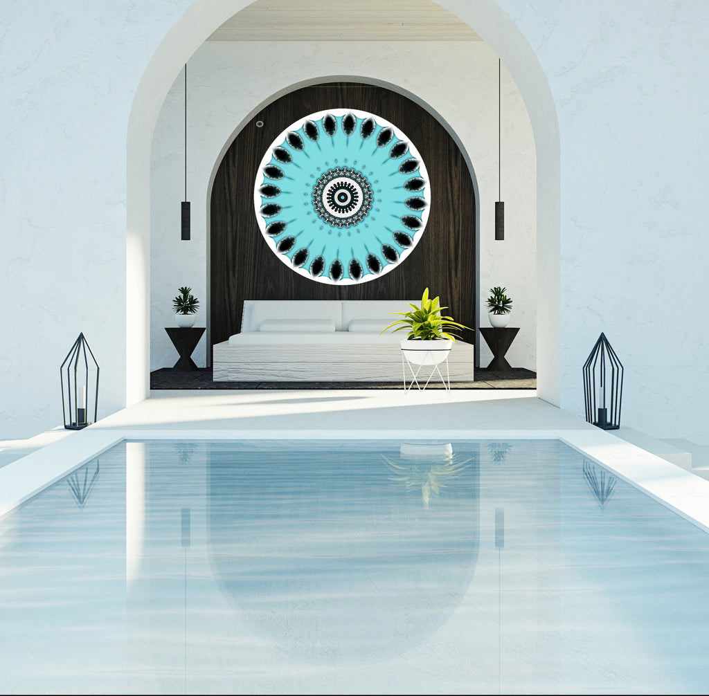 A Visual Deep Breath: A study in radial symmetry, "Dreamscape" utilizes original photography, deconstructed and layered into a precise digital form. A rhythmic, centered focal point settles a room, providing a sense of ordered quiet. The sharp contrast and radial patterns offer a "brain reset,” offering a moment of forced clarity in an otherwise busy world.
