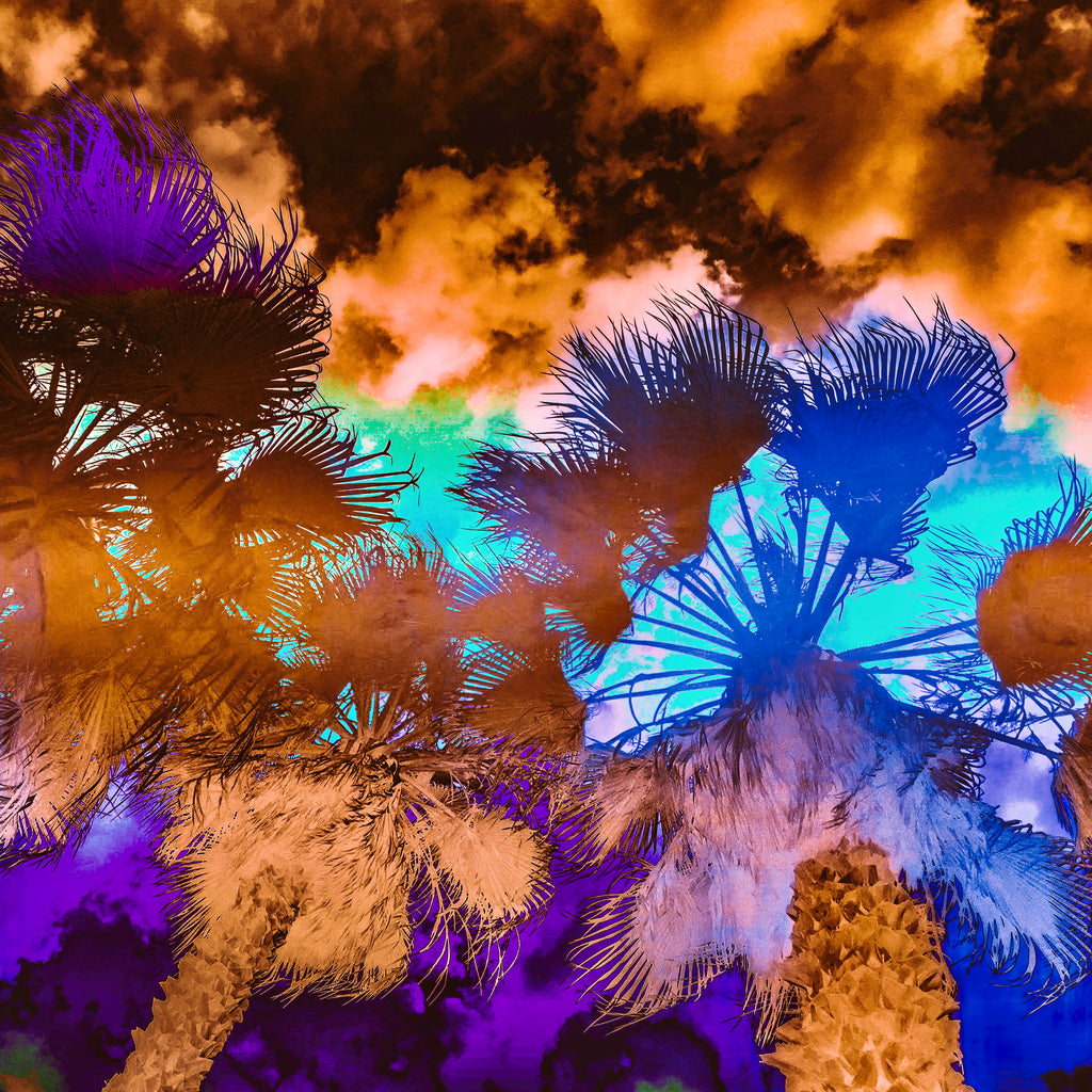 Perhaps because I live in the Northeast, I am magically drawn to palm trees whenever I am surrounded by them. The swaying dance of the tropical fronds leaves me mesmerized. These photographs were captured in Southern California. They have been digitally colorized.